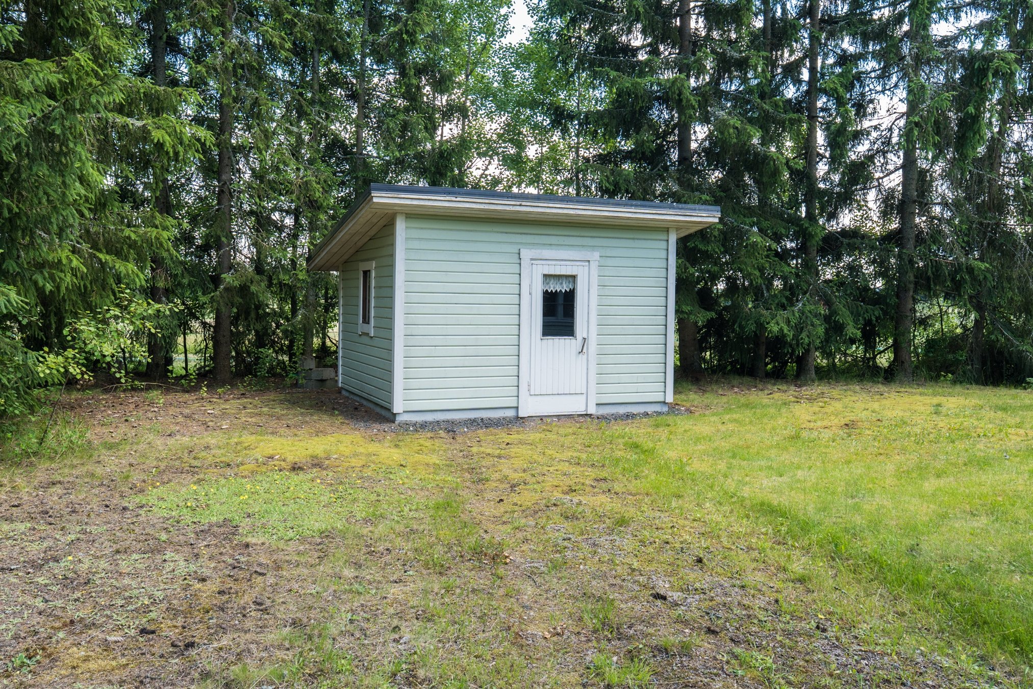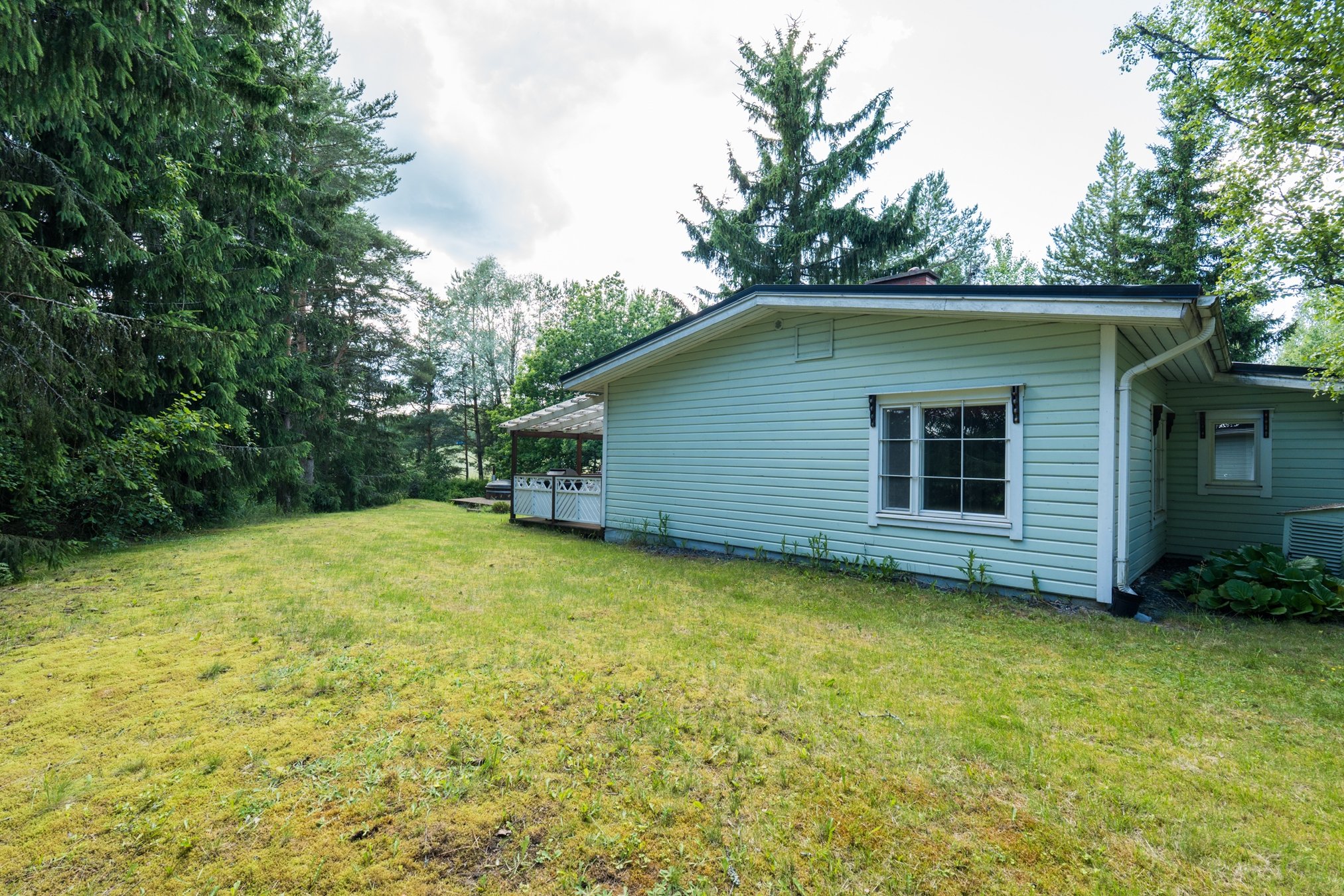 Piha-alueella puustoa ja nurmialuetta.