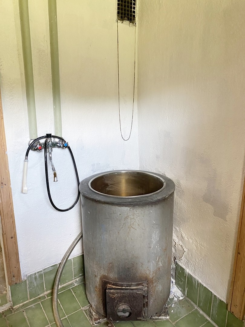 Kylpyhuone on kellarikerroksessa.