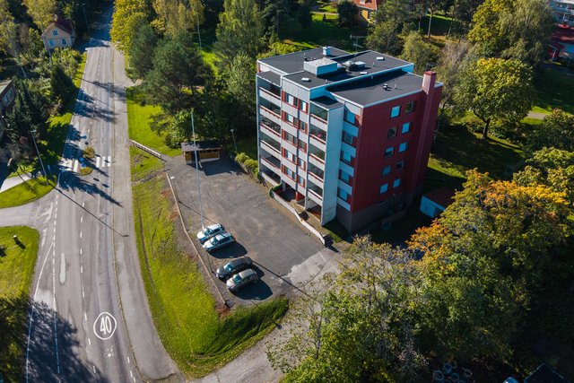 Ei tarkistusmitattu. Pinta-alat saattavat tämän ikäisissä kohteissa (yhtiö rekisteröity ennen 1.1.1992) poiketa olennaisestikin asuinrakennusten nykyisten mittaustapojen ja standardien (SFS 5139) mukaan laskettavasta asuintilojen pinta-alasta. Pinta-ala voi siis olla edellä mainittua pienempi tai suurempi.