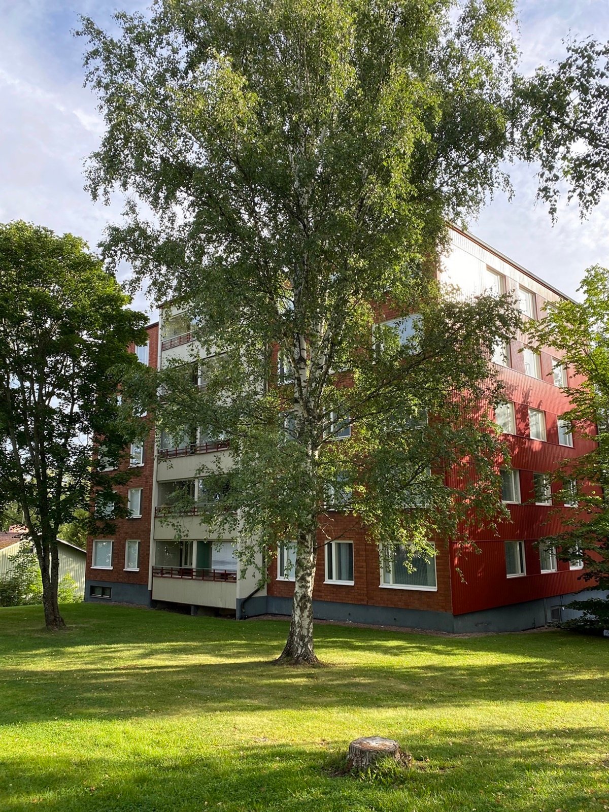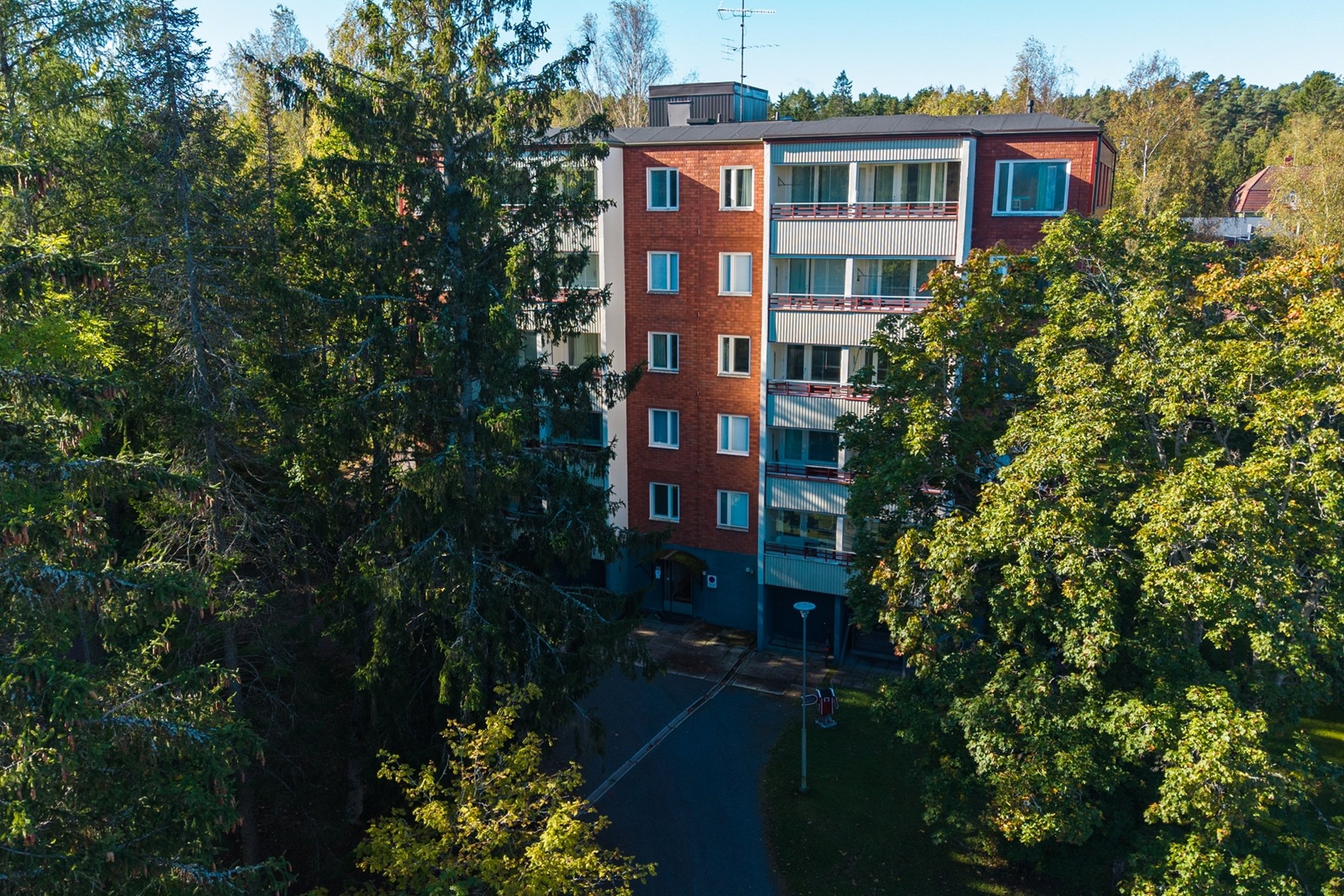 Hyvästä taloyhtiöstä myytävänä ensimmäisen kerroksen kolmio.