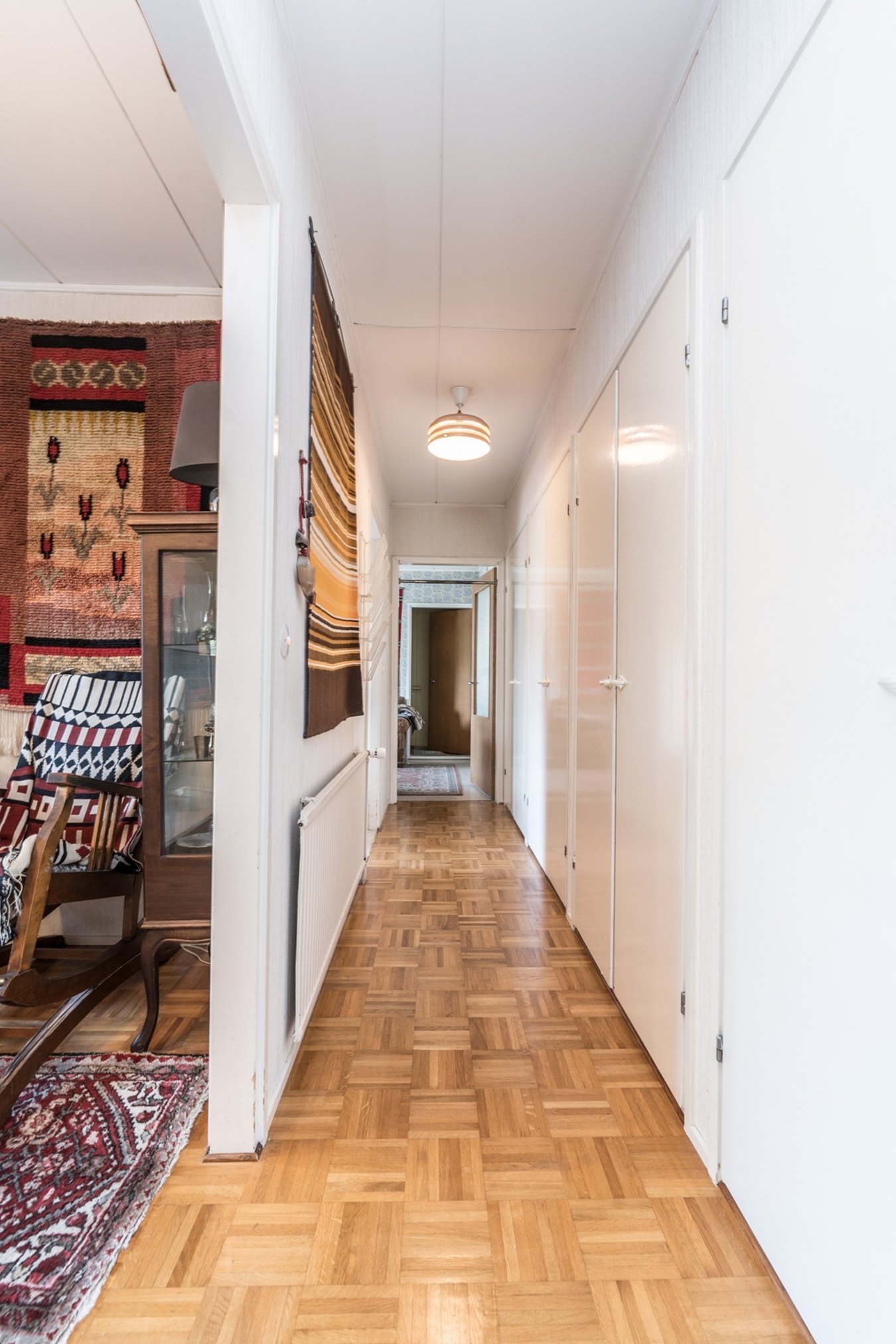 Makuuhuoneiden viereisessä käytävässä on kaappitilaa.