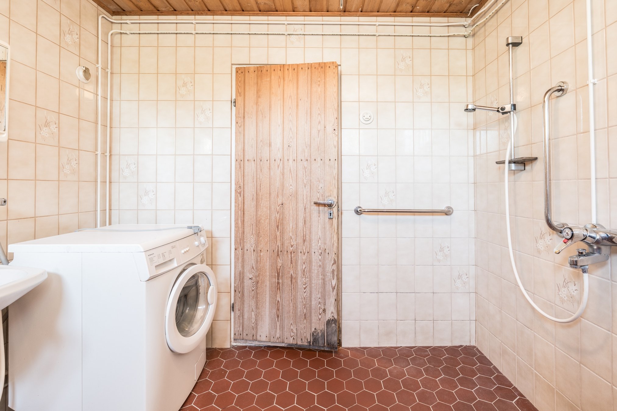 Suihku, pesukoneliitäntä, lattialämmitys, peilikaappi ja pesuallas